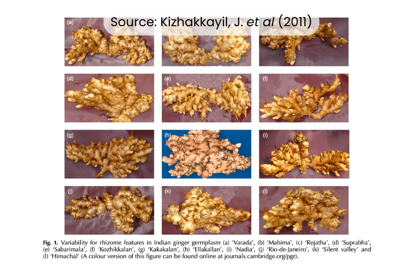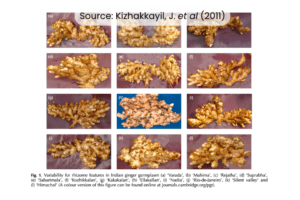 India, the world’s leading producer of ginger (Zingiber officinale), grows a wide range of varieties suited to diverse climates. Prominent improved cultivars include IISR Varada, Mahima, Rejatha, and Suprabha, known for high yield and quality rhizomes. Traditional landraces such as Maran, Nadia, and Wayanad remain prized for their aroma and low fibre content. Unique regional types like Ing Makhir from Meghalaya and Thingpui from Mizoram, both rich in gingerol.