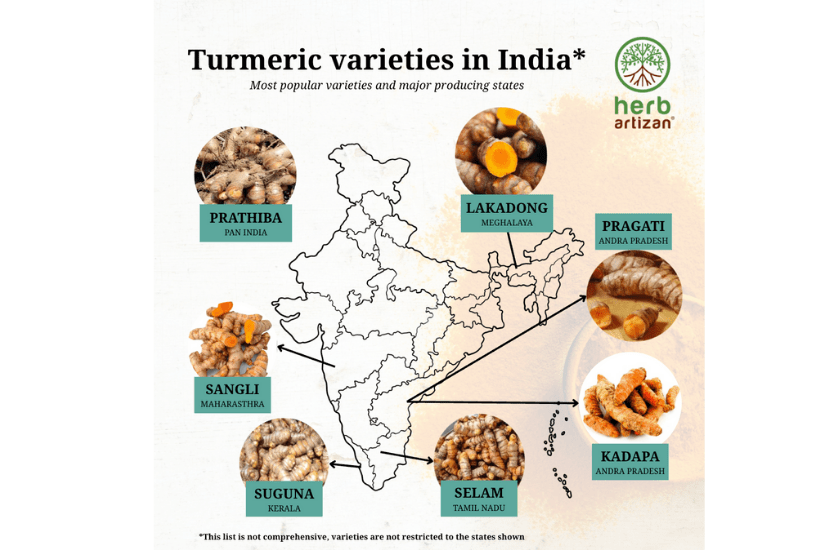 India, the world’s leading producer and exporter of turmeric, offers a wide variety suited to diverse climates and uses. CAR–IISR has released several improved cultivars such as IISR-Pragati, IISR-Kedaram, Prathibha, Prabha, Suguna, Sudharsana, Suvarna, IISR-Alleppey Supreme, and IISR-Surya. Mainly selected for higher yield, better dry recovery, and quality traits. Buyers often choose based on colour, aroma, and curing performance. The North East India has distinct high-curcumin types.